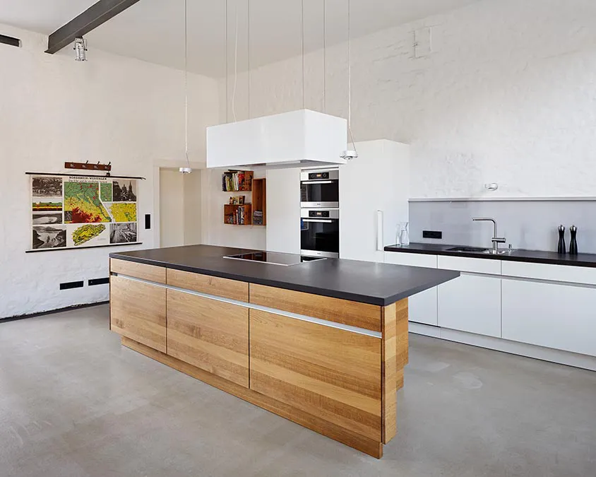 Leistung: Küchenplanung, Lichtplanung, Maßanfertigung in unserer Schreinerei, Lieferung und Montage der Möbel und Leuchten